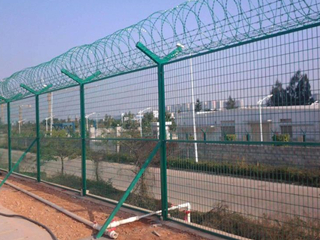 防爬帶刀刺圍欄網(wǎng)采用優(yōu)質(zhì)低碳鋼絲焊接或編織而成,網(wǎng)孔有50*50方孔75*150長(zhǎng)方孔等,絲徑5.0-6.0mm可定,立柱一般采用Y型便于安裝頂端的刺繩或刀片滾籠,立柱60*60mm;80*80mm方型焊管或采用70*100的掛式連接立柱。防爬帶刀刺圍欄網(wǎng)表面處理為噴塑,浸塑或熱鍍鋅處理,顏色一般采用墨綠色,草綠色或銀色,端莊大方,使用壽命長(zhǎng)。