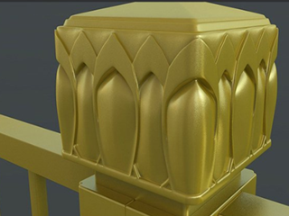 黃金護(hù)欄由立柱、橫桿、豎桿、柱帽、底座等幾個(gè)主要配件組合而成。