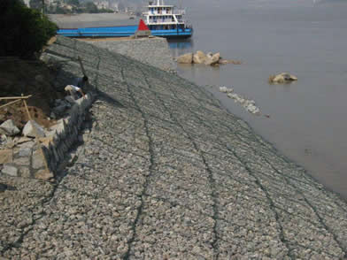 (2)鍍鋅絲包塑護(hù)坡網(wǎng)是在鍍鋅鐵絲的表面包一層PVC保護(hù)層,再編織成各種規(guī)格的六角網(wǎng)。這層PVC保護(hù)層將會大大增加網(wǎng)的使用壽命,并且通過不同顏色的選擇,使其能和周圍的自然環(huán)境相融合。