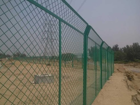 結(jié)構(gòu):用冷拔低碳鋼絲焊接而成的隔離網(wǎng),用連接附件與鋼管立柱連接固定,可預(yù)埋也可采用法蘭盤膨脹栓固定。