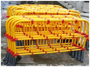 臨時隔離欄又叫可移動圍欄、臨時護欄、鐵馬護欄,主要用于交通市政道路維修時候的臨時隔離、臨時圈圍使用、自由拆裝、安裝簡易、一般由熱鍍鋅管表面進行亮麗黃顏色進行噴涂、也有用鐵管焊接后進行熱鍍鋅處理的,是所有連接部件,都采用插掛連接;底座有兩種一種是臨時底座,還有一種是條形鐵板底座、重量不等、不需要挖地基,可輕松拆除,隨時移動安裝。