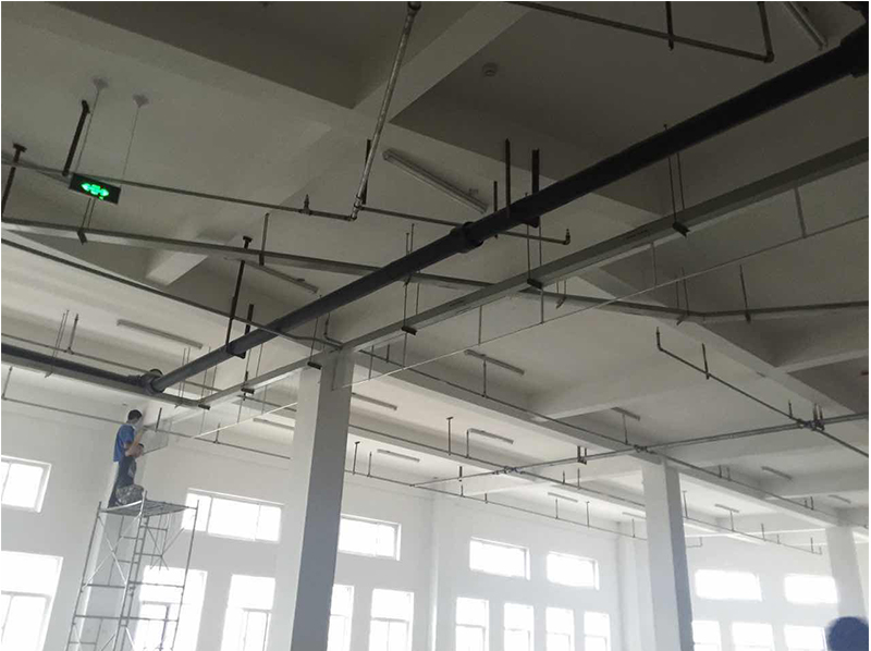 防火布所在位置的上端角鋼用膨脹螺栓直接固定在建筑頂部,下端角鋼用膨脹落山固定在兩端的墻或立柱上。上下端角鋼之間用角鋼分為若干檔,每檔間距依實際空間及廠家產品而定。如沒有規定,按圖紙要求定位900mm,分檔的豎向角鋼與上下端角鋼焊接。